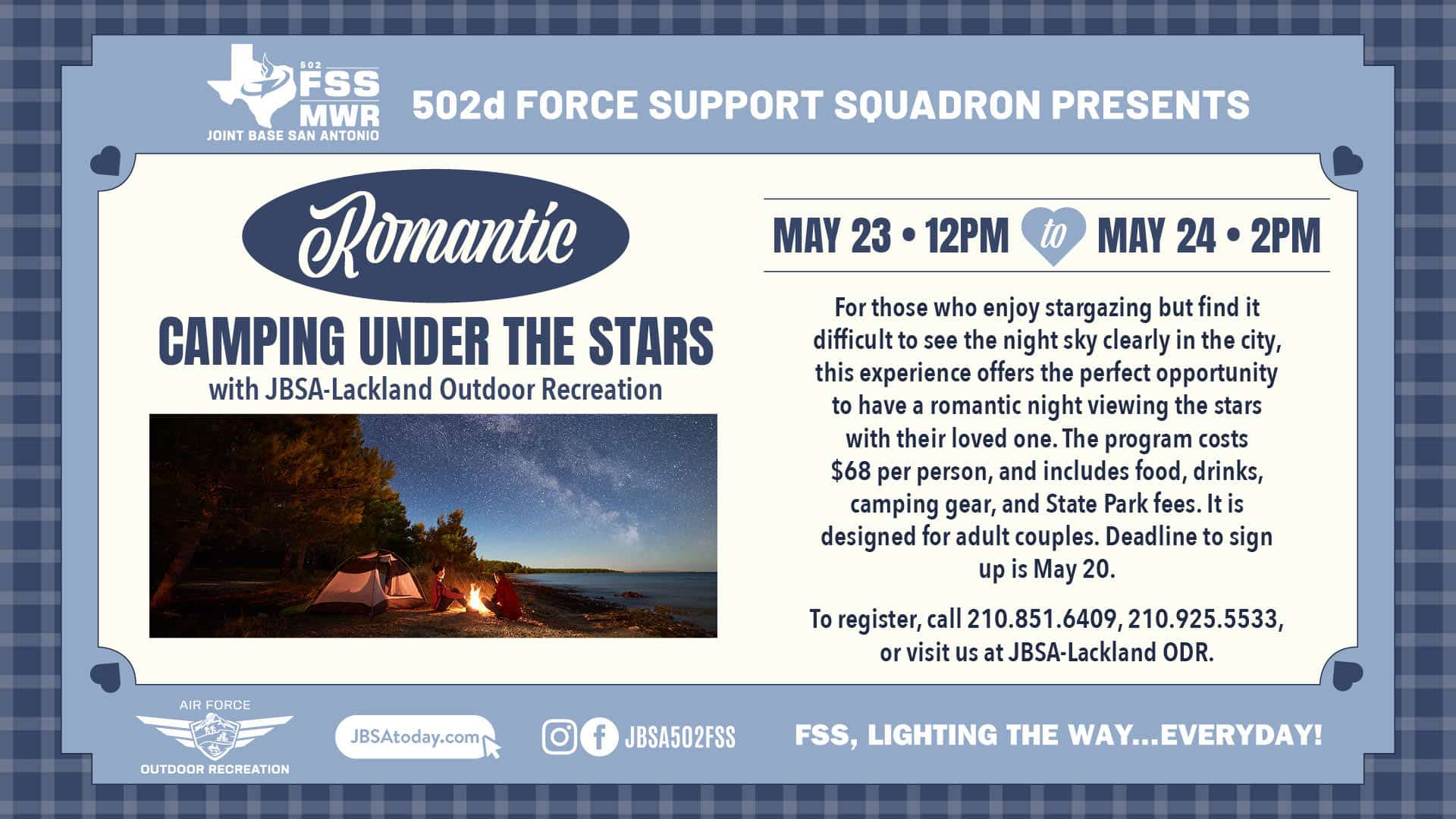 For those who enjoy stargazing but find it difficult to see the night sky clearly in the city, this experience offers the perfect opportunity to have a romantic night viewing the stars with their loved one. The program costs $68 per person, and includes food, drinks, camping gear, and State Park fees. It is designed for adult couples. Deadline to sign up is May 20.