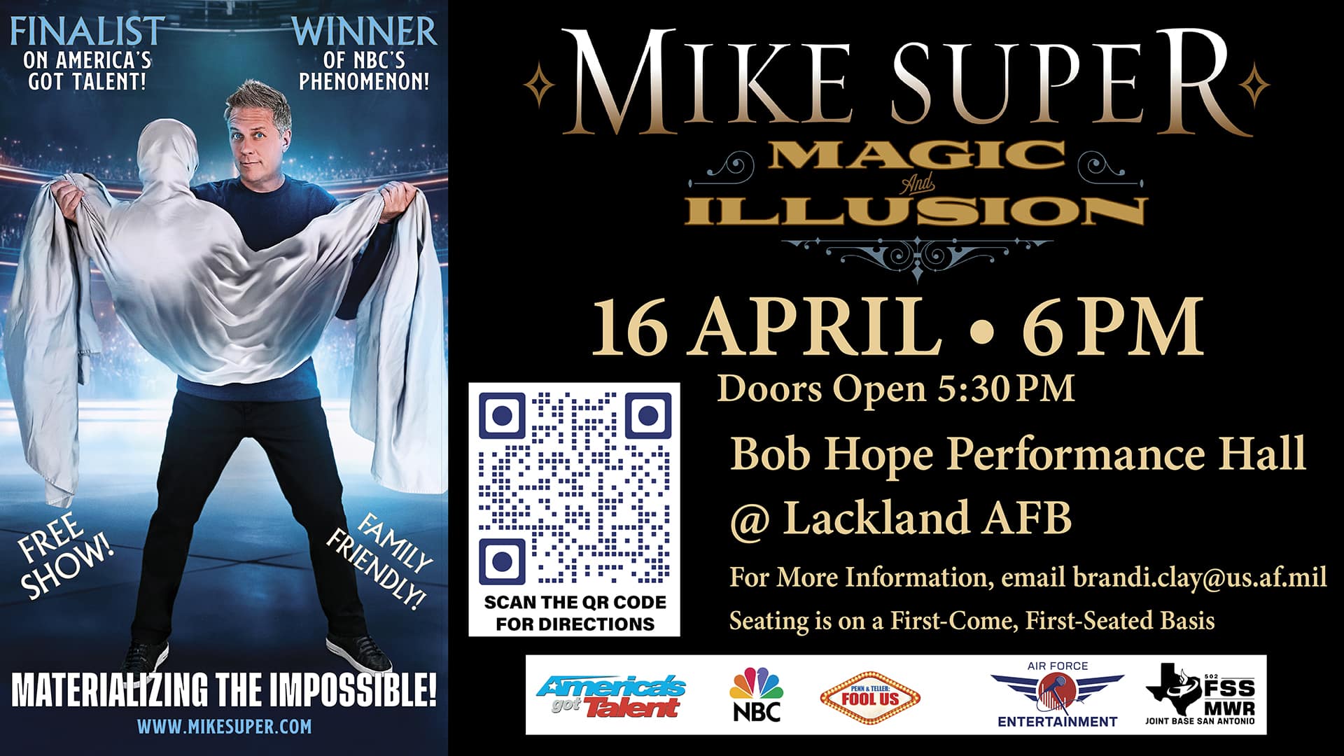JBSA-Lackland Bob Hope Theater April 16 | 6PM ✨ Magic is Coming to JBSA! ✨ Get ready to be amazed, JBSA! World-renowned illusionist Mike Super—winner of America’s Got Talent and […]