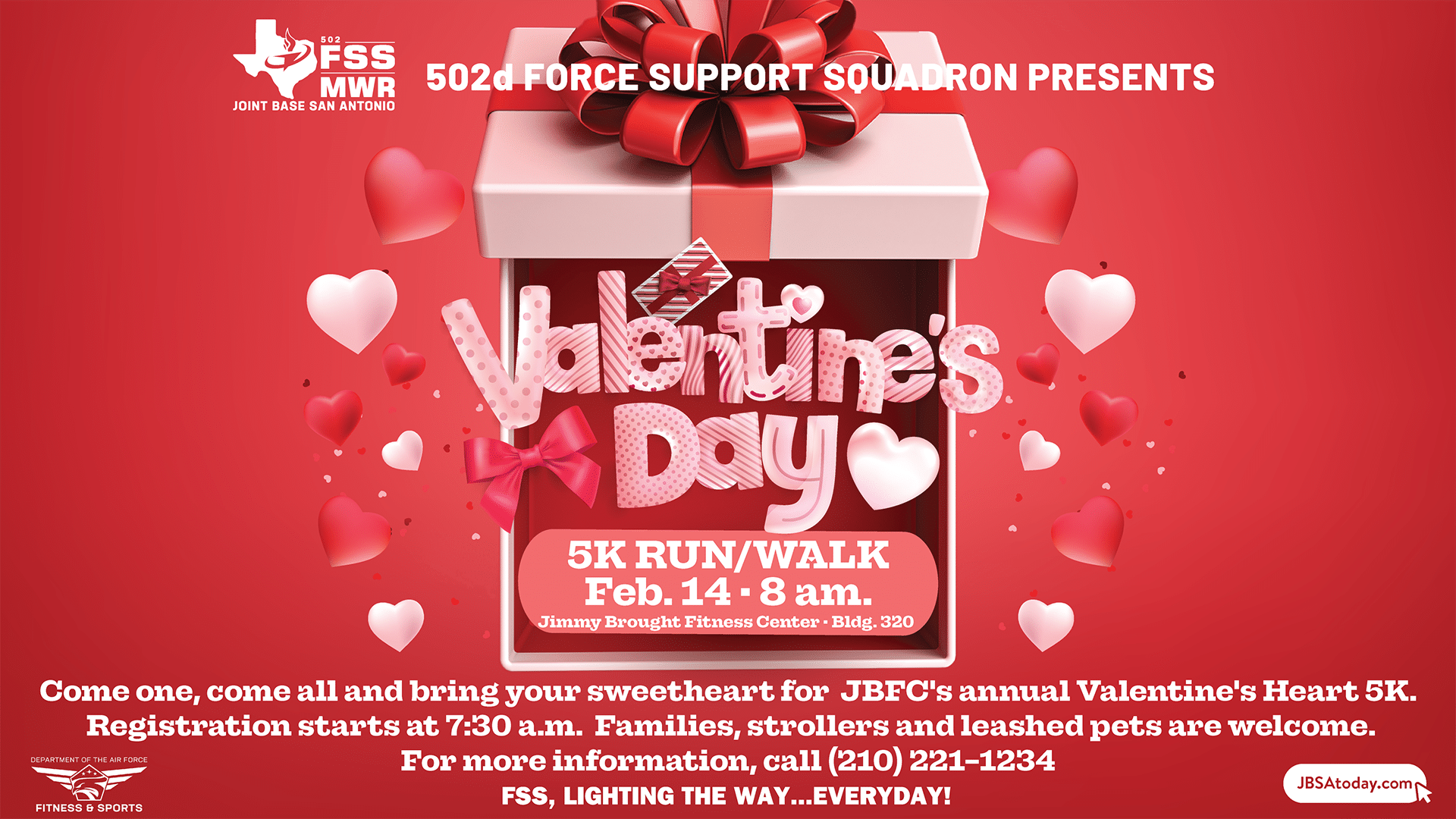 JBSA-Fort Sam Houston Feb. 14 | 8 a.m. Come one, come all and bring your sweetheart for JBFC's annual Valentine's Heart 5K. Registration starts at 7:30 a.m. Families, strollers and […]