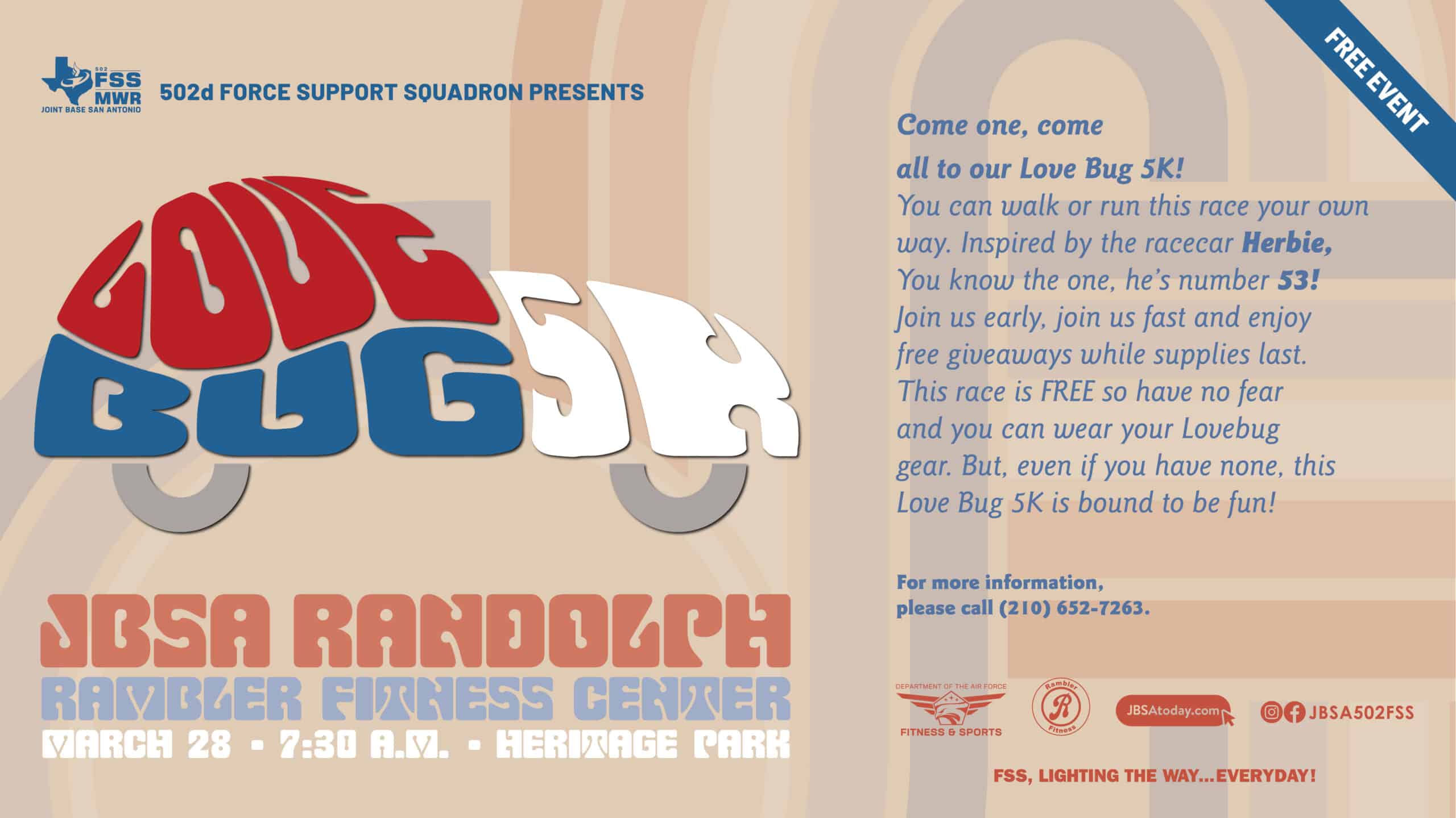 JBSA-Randolph Rambler Fitness Center March 28 | 7:30 a.m. | Heritage Park Come one, come all to our Love Bug 5K! You can walk or run this race your own […]