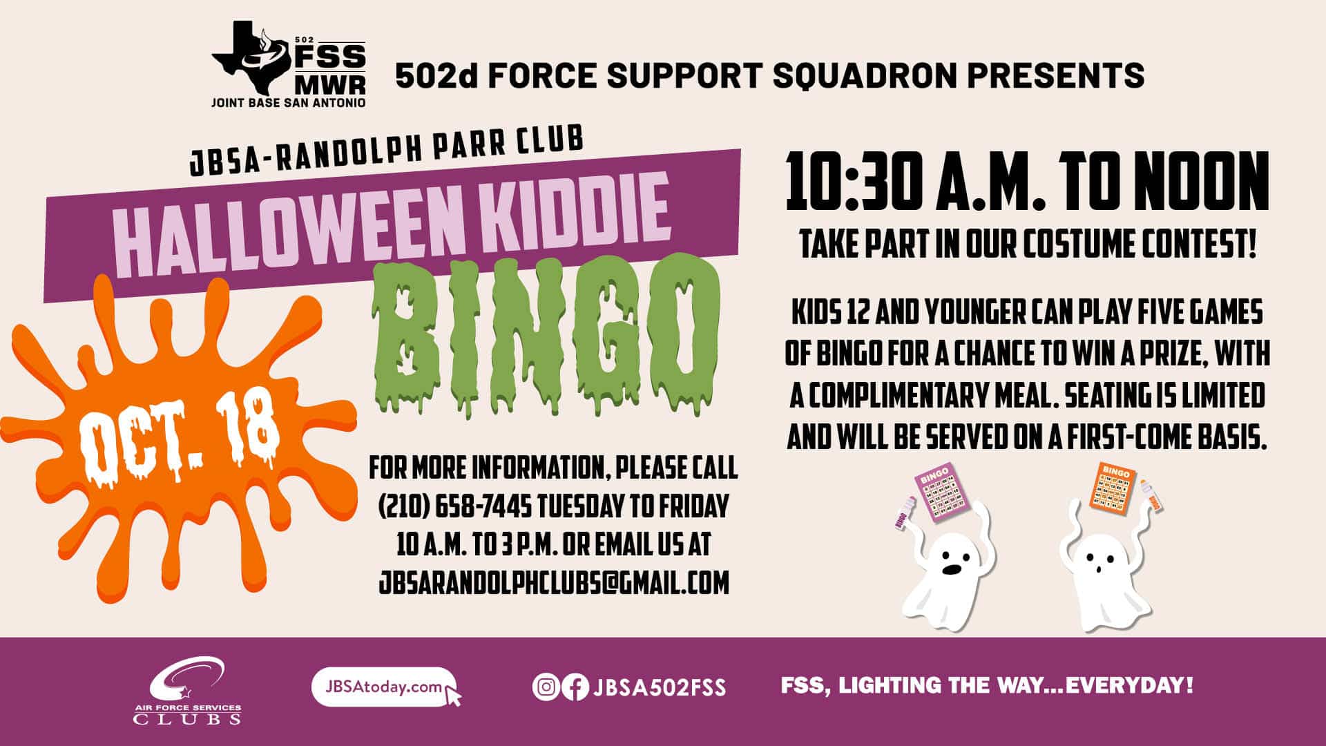 JBSA-Randolph Parr Club Oct. 18 | 10:30 a.m. Kids 12 and younger can take part in our costume contest and play five games of bingo for a chance to win […]