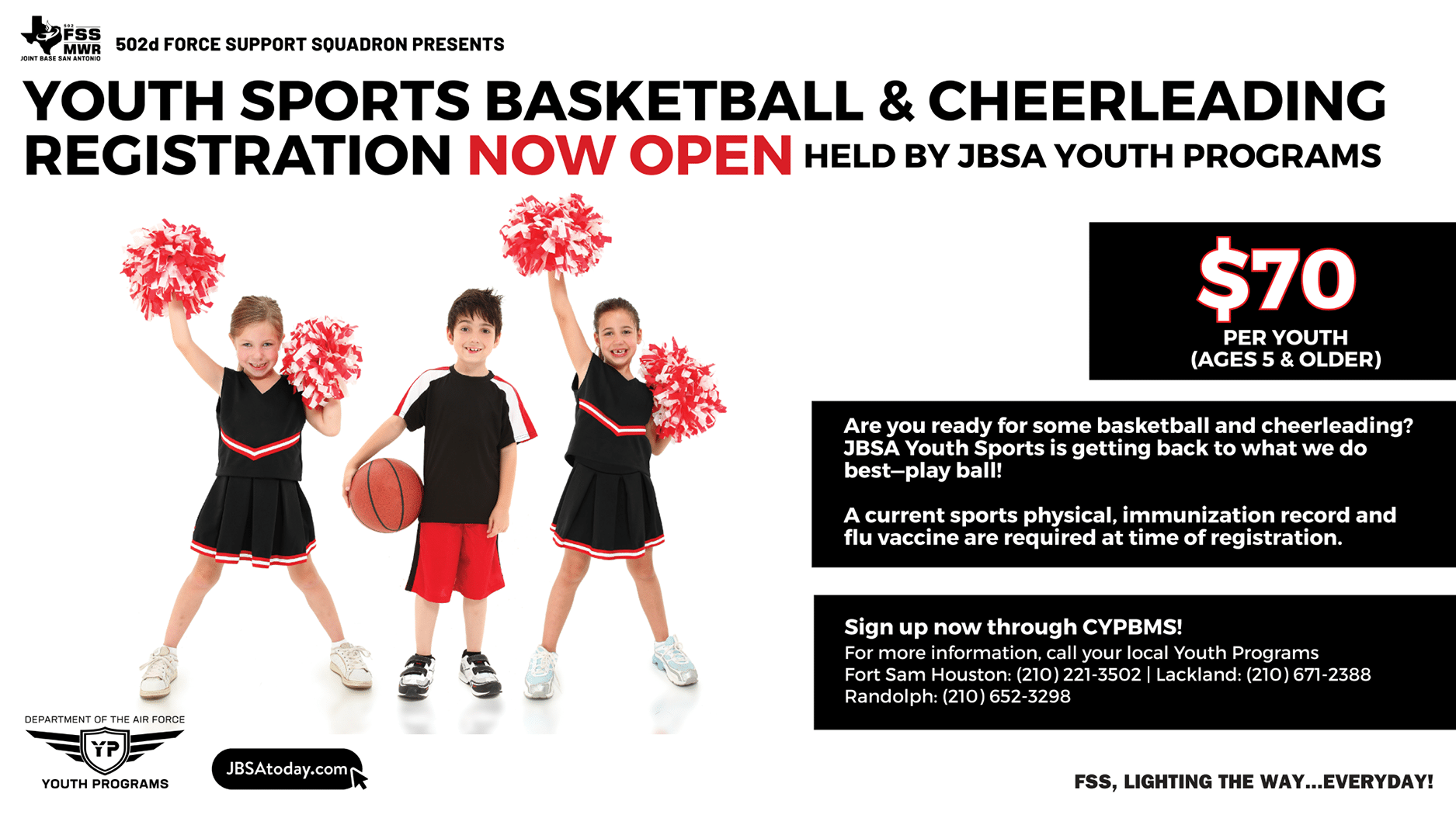 WINTER BASKETBALL & CHEERLEADING REGISTRATION Are you ready for some basketball and cheerleading? JBSA Youth Sports is getting back to what we do best – play ball! The cost is […]