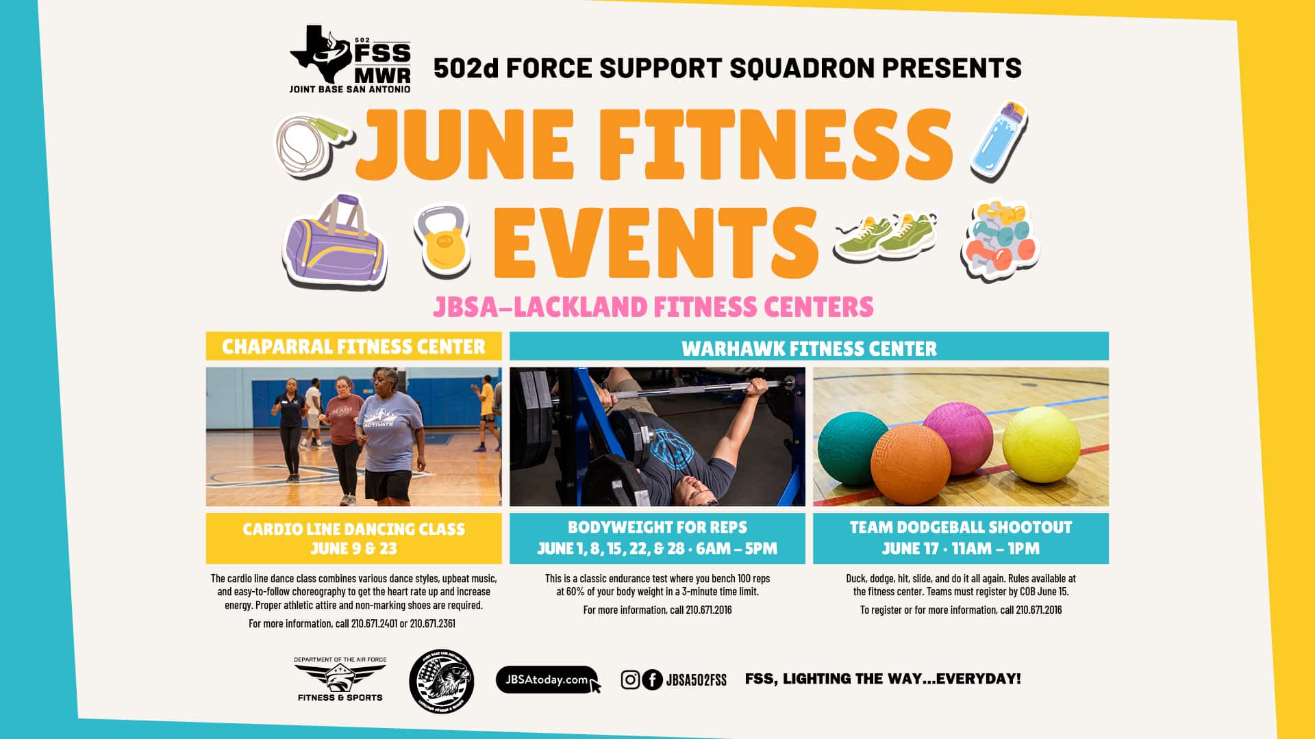 JBSA-Lackland Fitness Centers Chaparral Fitness Center Cardio Line Dancing Class June 9 & 23 The cardio line dance class combines various dance styles, upbeat music, and easy-to-follow choreography to get […]