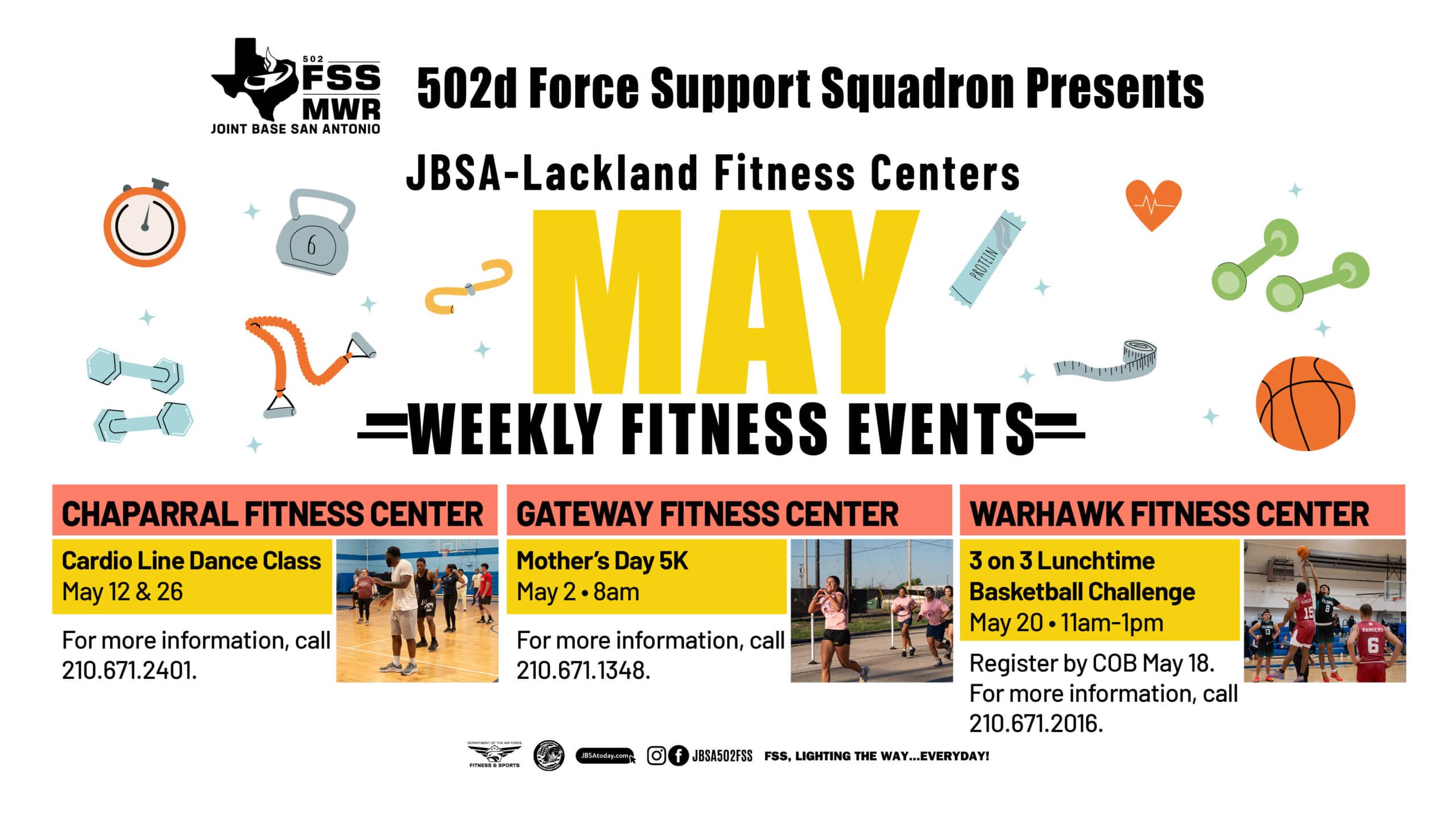 JBSA-Lackland Fitness Centers Chaparral Fitness Center Cardio Line Dance Class May 12 & 26 Do you like to dance? The Chaparral Fitness Center hosts a fun cardio line dance class […]